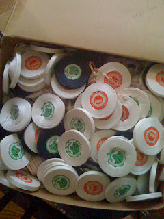 we spent the morning respooling them and thinking about all the different things you could make with so many ribbons.